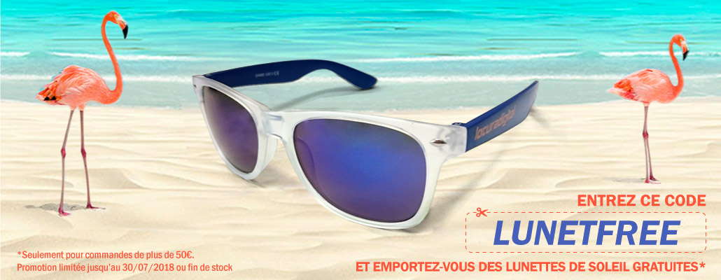 Utilisez le coupon LUNETFREE lorsque vous placez votre commande pour obtenir vos lunettes. N'oubliez pas que cette promotion est valable que pour des commandes d'un montant total supérieur à 50€ et sera valable jusqu'au 30/07/2018 ou à la fin de stock.